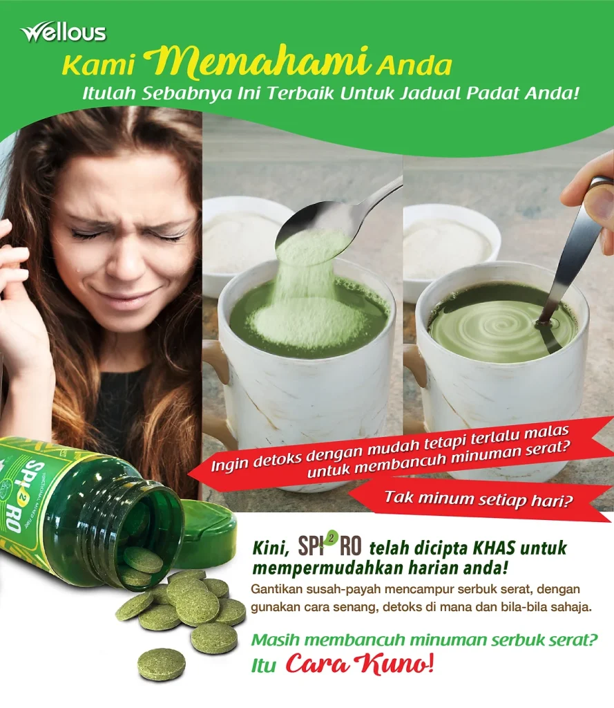 Masih lagi detoks dengan serbuk serat? Kini SPI2RO dicipta khas untuk memudahkan detoks harian anda hanya dengan 1 pil sahaja. Ambil Spiro Sehari sahaja, hanya perlu kemam seperti gula-gula. Mudah !